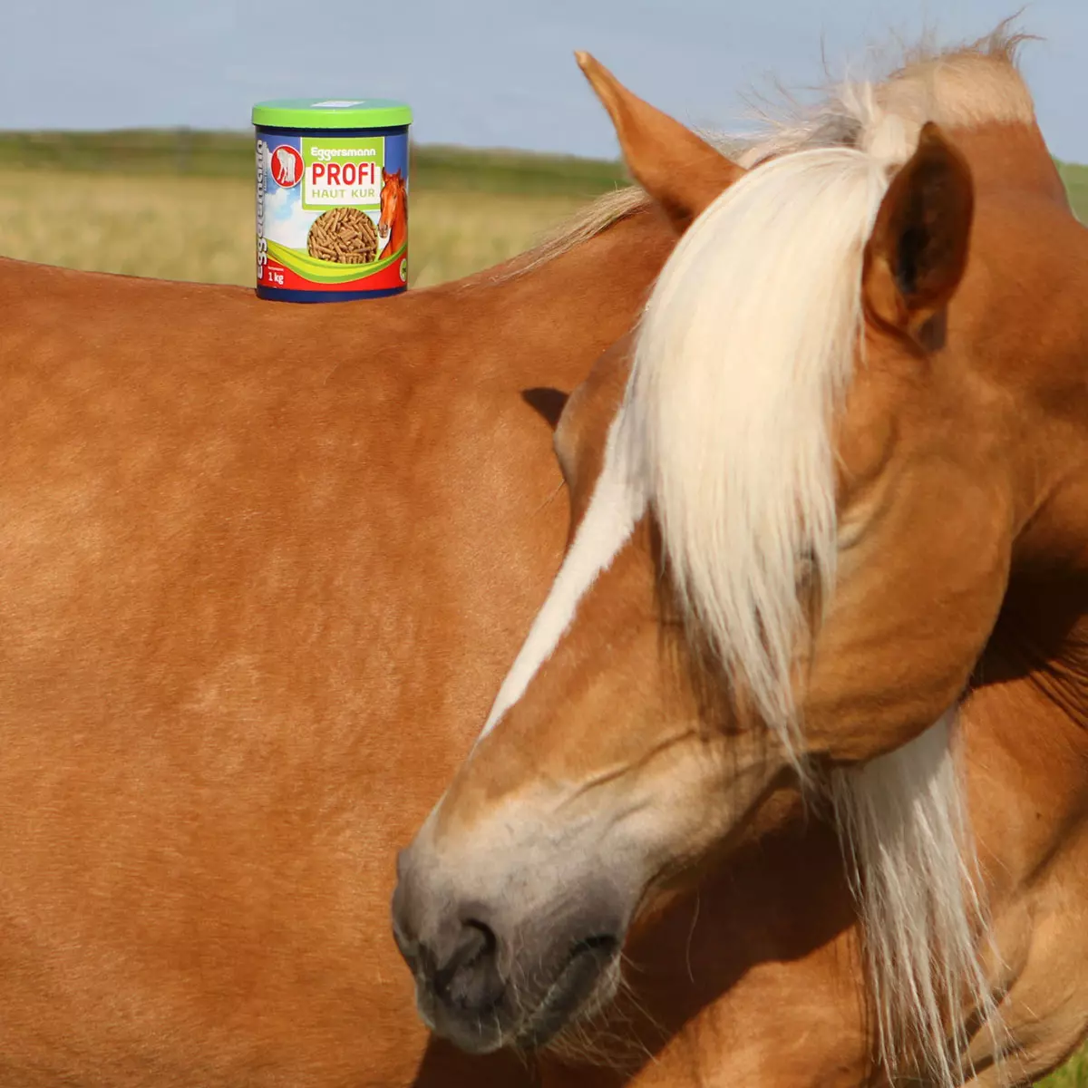 Hochverfügbares Zink als wichtiger Nährstoff für das Immunsystem, unterstützt die regenerativen Kräfte der Haut und mobilisiert die körpereigenen Abwehrkräfte. Kupfer ist für die Bindegewebsbildung unentbehrlich, Selen schützt die Zellmembranen und ist entscheidend für ein starkes Immunsystem. Der zugesetzte Schwarzkümmel fördert die natürlichen Abwehrkräfte, dadurch kann Juckreiz gelindert werden. Bierhefe und B-Vitamine wirken regulierend auf das biologische Gleichgewicht der Darmflora, in Verbindung mit DL-Methionin und Kieselgur runden sie die Rezeptur ab. Unsere Profi Haut Kur fördert den aktiven Stoffwechsel und sorgt für eine intakte Haut und belastbare Hufe. Es kann die Regeneration der Haut bei Pferden, die zu Ekzemen neigen, von innen unterstützen. So können Sie nachhaltig zur Versorgung eines gesunden Haut-, Fell- und Hufwachstum bei Ihrem Pferd beitragen.
