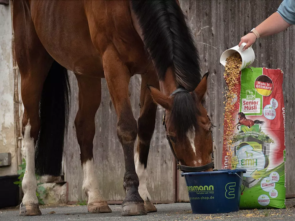 Mit steigendem Alter verschlechtert sich auch die Futterverwertung des Pferdes. Heißt: Das, was früher mal an Futter ausgereicht hat, reicht nun oft nicht mehr, um den Bedarf des Seniors zu decken und die Körpermasse zu erhalten. Daher gibt es speziell auf die Bedürfnisse der älteren Pferde abgestimmte Senior-Futtermittel, die dem erhöhten Bedarf gerecht werden. Diese sind für die speziellen Bedürfnisse der „Oldies“ entwickelt worden, um altersbedingtem Substanzverlust vorzubeugen, das Immunsystem zu stimulieren und den Appetit anzuregen.