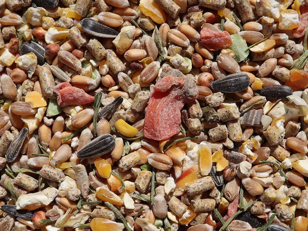 Unser Struktur-Körnermix Oregano ist ein gentechnikfreies Legekorn zur Deckung des Nährstoffbedarfs während der Legeperiode, basierend auf regionalen Körnern und Saaten, verfeinert mit wertvollem Oregano Öl, Karotten, Erbsen und Petersilienstengeln.