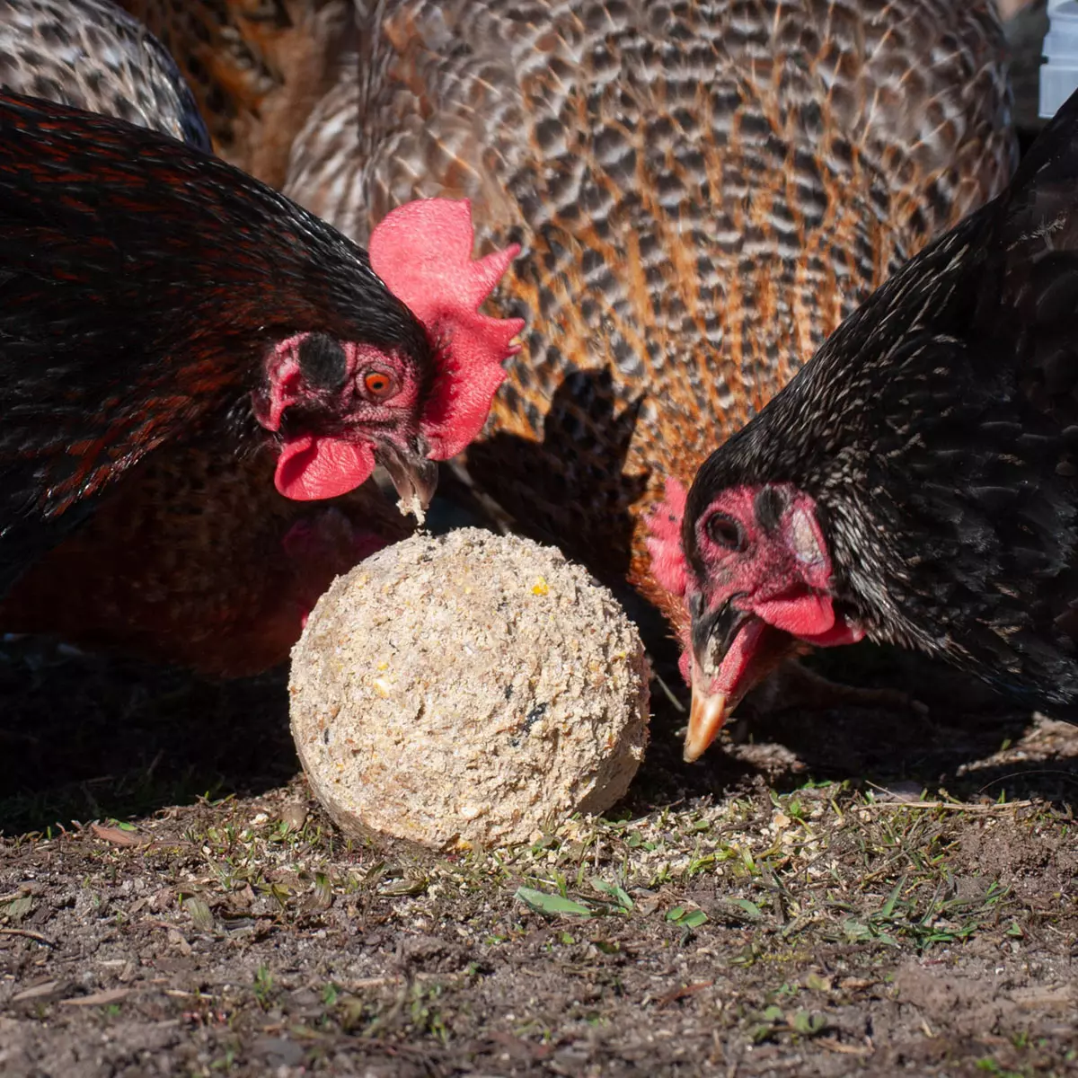 Unsere Hühner-Kugeln XXL sind gentechnikfreie Futterkugeln zur spielerischen Beschäftigung Ihrer Hühner. Beste pflanzliche Rohstoffe wie Sonnenblumenkerne, Mais und Erdnüsse sorgen für eine besonders schmackhafte Mischung, die Ihre Hühner mit wichtigen pflanzlichen Nährstoffen versorgt. Unsere Hühner-Kugeln XXL sind mit und ohne Netz erhältlich, sodass sie entweder im Stall aufgehängt oder auf den flachen Boden gelegt werden können. Durch die runde Form und die stetige Bewegung der Futterkugeln wird der natürliche Pickdrang Ihrer Hühner auf spielerische Weise befriedigt.