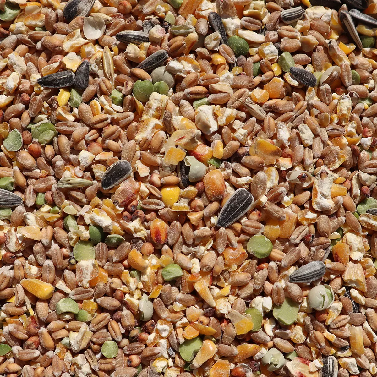 Besondere Körnermischung ohne Gentechnik · für weitere Geflügelarten, wie Gänse und Enten geeignet