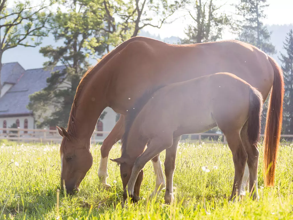 Die auf die Bedürfnisse des Deckhengstes abgestimmte Nährstoffversorgung spielt eine große Rolle, da die wenigsten Hengste in den Genuss ausreichend frischen Weidegrases kommen. Einen hohen Stellenwert nehmen dabei Vitamin E mit seinen antioxidativen Eigenschaften und die bedarfsgerechte Selenversorgung ein. Kommt es hier zu einem Mangel, kann sich das negativ auf Libido und Samenqualität des Hengstes auswirken. Bei unzureichender Deckung über die Futterration, empfiehlt sich die Zufütterung von Eggersmann Profi Vitamin E + Selen.