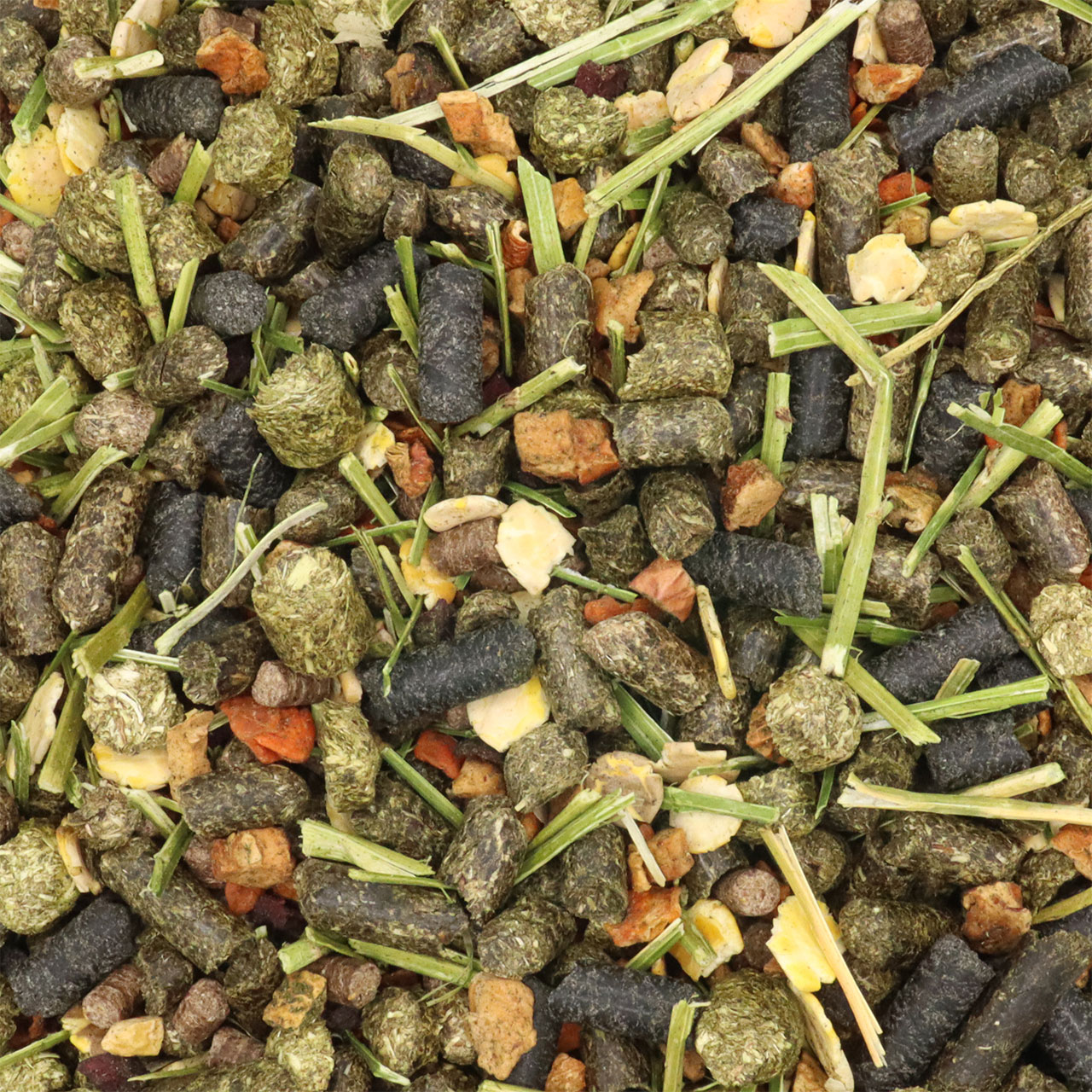 Unser Uncle Pet Premium Kaninchen Müsli getreidefrei ist ein reichhaltiges und abwechslungsreiches Strukturmüsli für alle Kaninchen- und Zwergkaninchenrassen. Der rohfaserreiche Mix mit köstlichem, vitaminreichem Gemüse, wertvollen Gräsern und schmackhafter Luzerne hilft beim wichtigen Abrieb der stets nachwachsenden Zähne und unterstützt mit seinem hohen Strukturgehalt die Verdauung. Der enthaltende Schwarzkümmelkuchen gehört zu den Ölsaaten und bringt nicht nur ätherische Öle mit, sondern auch Vitamine, Mineralien, Spurenelemente, essentielle und nicht essentielle Aminosäuren, die unterstützend auf den gesamten Organismus wirken können. Unser getreidefreies Müsli bietet somit eine optimale Ernährungsgrundlage für ein gesundes Tierleben.