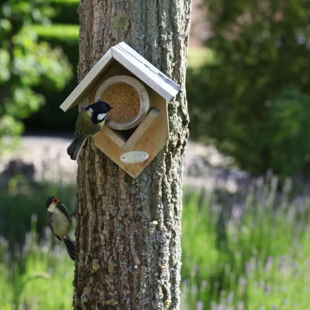 Bestandteile wie pflanzliche Fette in Kombination mit Erdnussmehl bieten eine kalorien- und somit energiereiche Köstlichkeit für die gefiederten Gartenbesucher. Das Futterglas lässt sich im Erdnussbutter-Haus sicher platzieren, alternativ kann die Butter auch direkt auf einem flachen Untergrund angeboten werden.