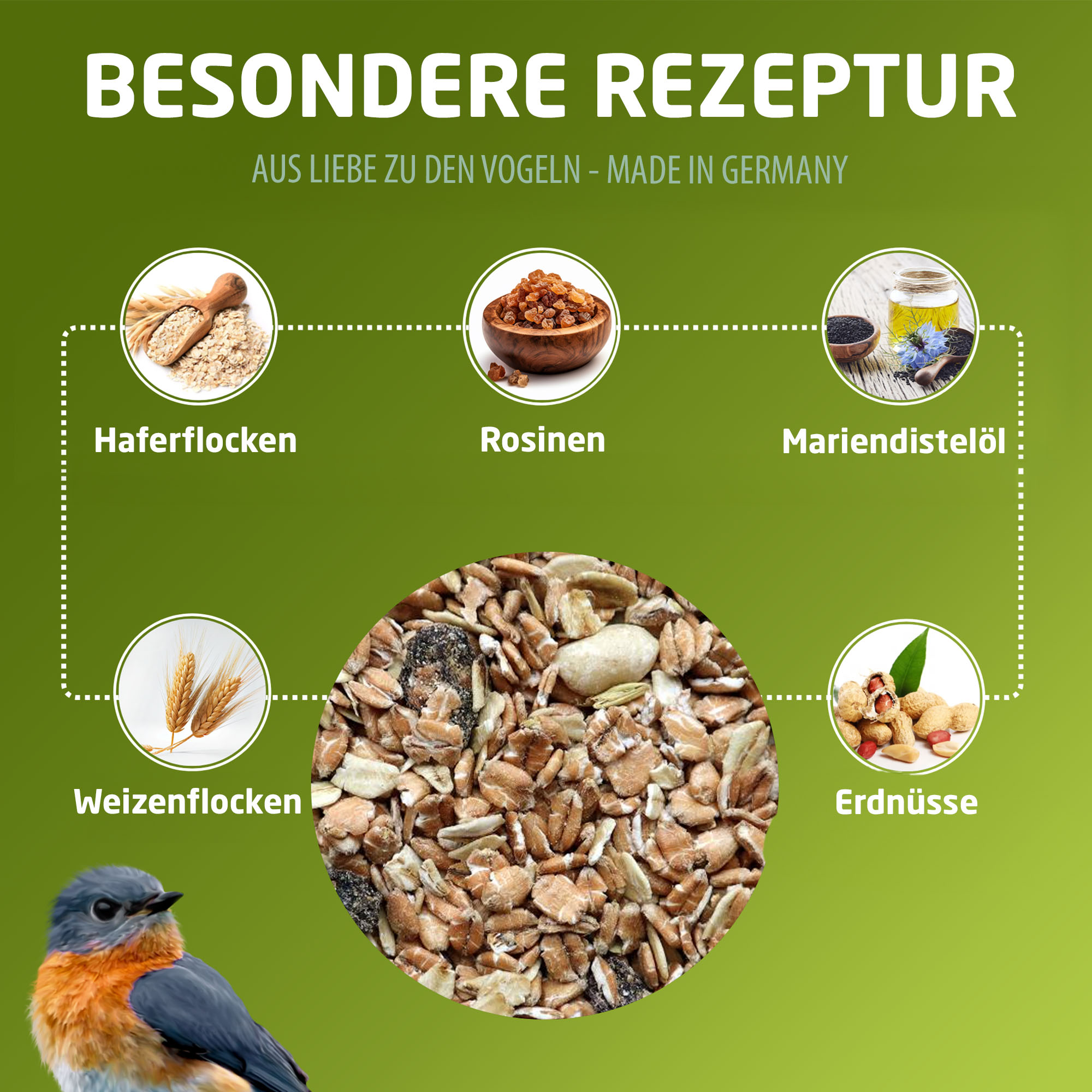 100% Made in Germany · für eine ganzjährige Fütterung - wertvolle und energiereiche Futtermischung unterstützt den Wärmehaushalt der Vögel - Mischfutter für freilebende Vögel