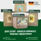 Viele Vogelfreunde wünschen sich mehr Einfluss darauf, was in ihrem Garten oder auf ihrem Balkon gefüttert wird. Das Volaris Selbst-Mix-Bundle ermöglicht genau das: Eine hochwertige Auswahl an natürlichen Einzelfuttern, die Sie je nach Jahreszeit, Vogelart oder eigenem Gefühl mischen können ganz ohne Zusätze oder Füllstoffe. Geschälte Sonnenblumenkerne sind fett- und energiereich und eignen sich hervorragend für eine ganzjährige Fütterung. Gehackte Erdnüsse liefern Energie und Eiweiß und sind eine Delikatesse für alle heimischen Garten- und Wildvögel. Kernige Haferflocken sind ein wahres Kraftpaket, vollgepackt mit Energie und Ballaststoffen stehen sie auf dem Speiseplan vieler Weichfresser, aber auch Allesfresser wir Meise oder Specht mögen den Geschmack. Getrocknete Mehlwürmer sind ein wahrer Protein-Snack. Insbesondere während der Brutzeit liefern die getrockneten Mehlwürmer eine wertvolle Ergänzung zum natürlichen Nahrungsangebot und bieten anschließend den Jungvögeln ein proteinreiches Futter.