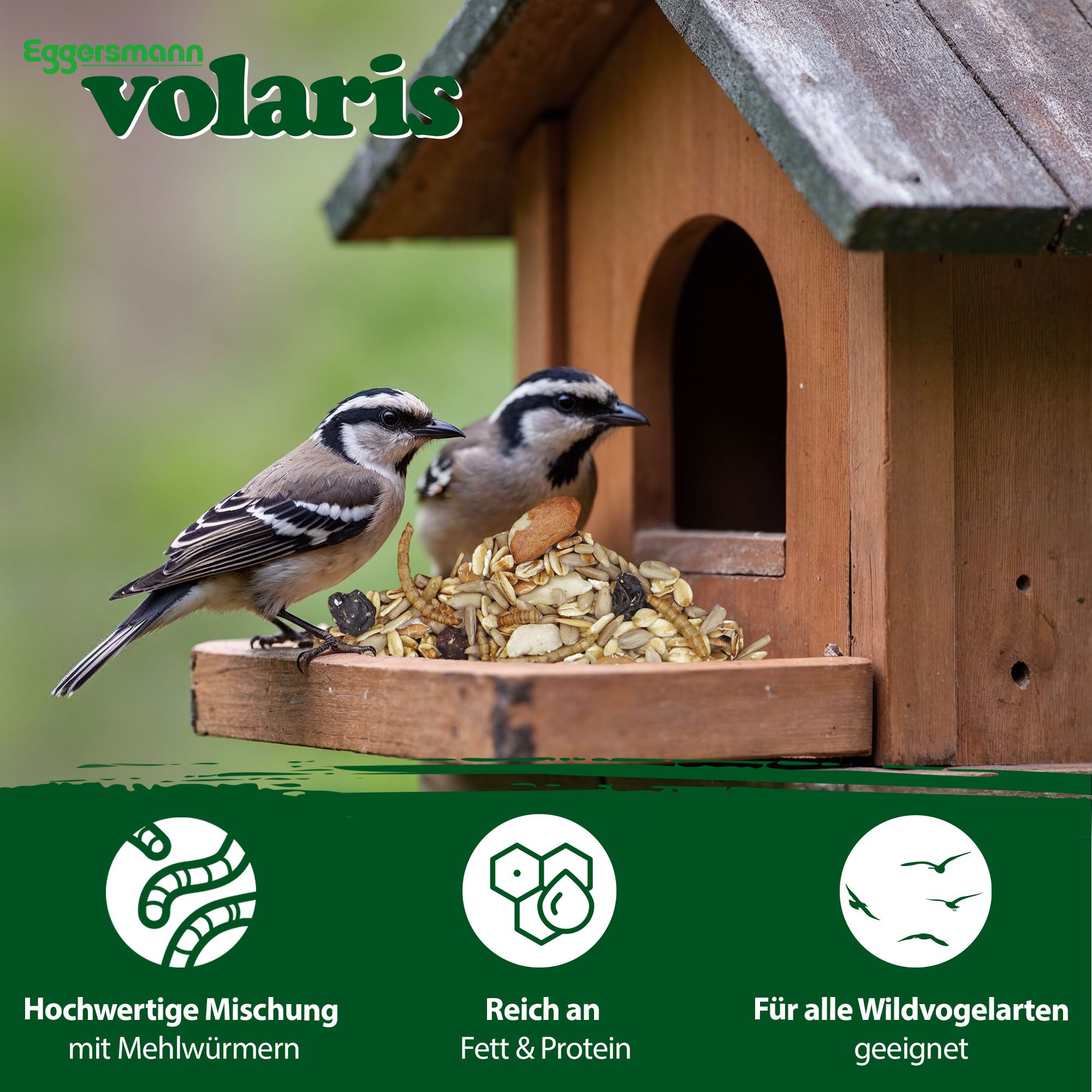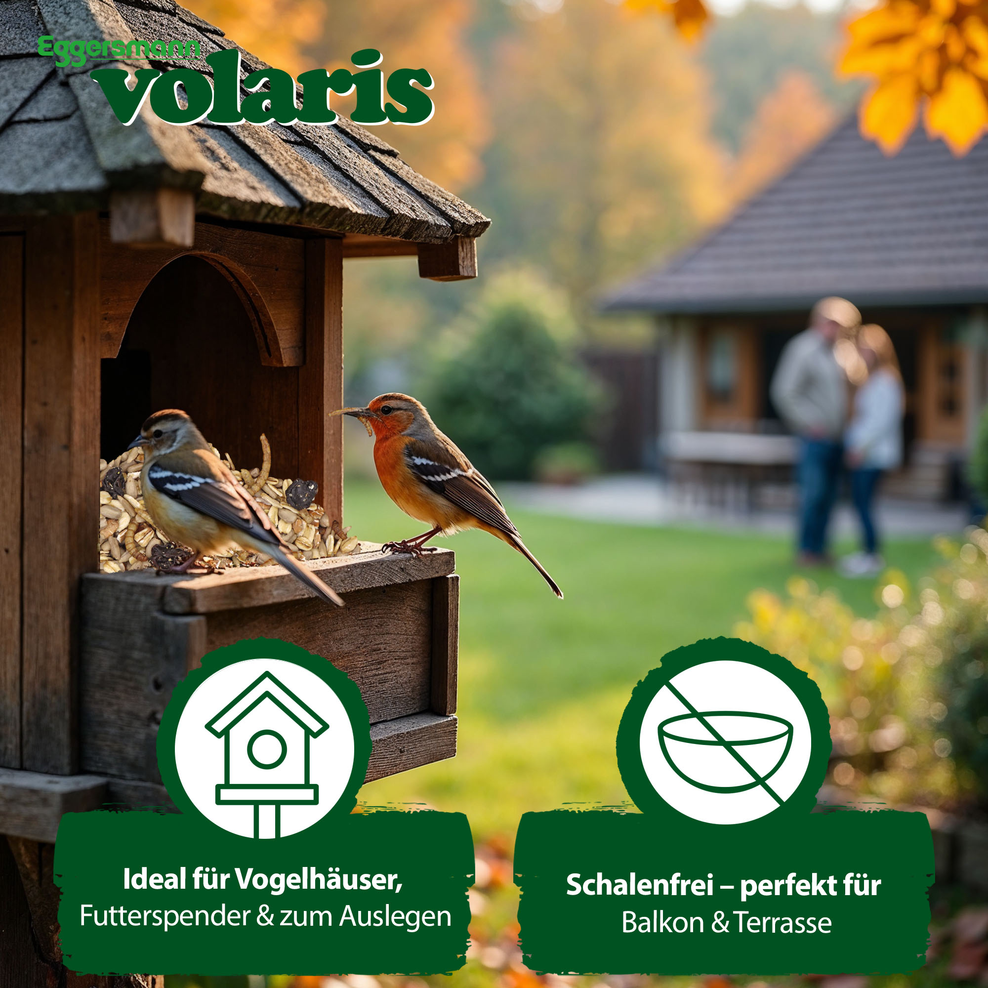 ,,"Unser Eggersmann volaris TERRASSENkörner Mix mit Insekten ist für die ganzjährige Fütterung geeignet! Wenn Sie das Futter in Vogelhäusern oder Futterspendern anbieten, reinigen Sie diese regelmäßig mit heißem Wasser. Auf diese Weise minimieren Sie die Übertragung und Ausbreitung von Krankheitserregern. Achten Sie darauf, dass das Futter auch bei starkem Wind, Schnee und Regen nicht durchnässt werden kann, da es sonst verdirbt oder vereist und die Vögel es dann nicht mehr fressen.