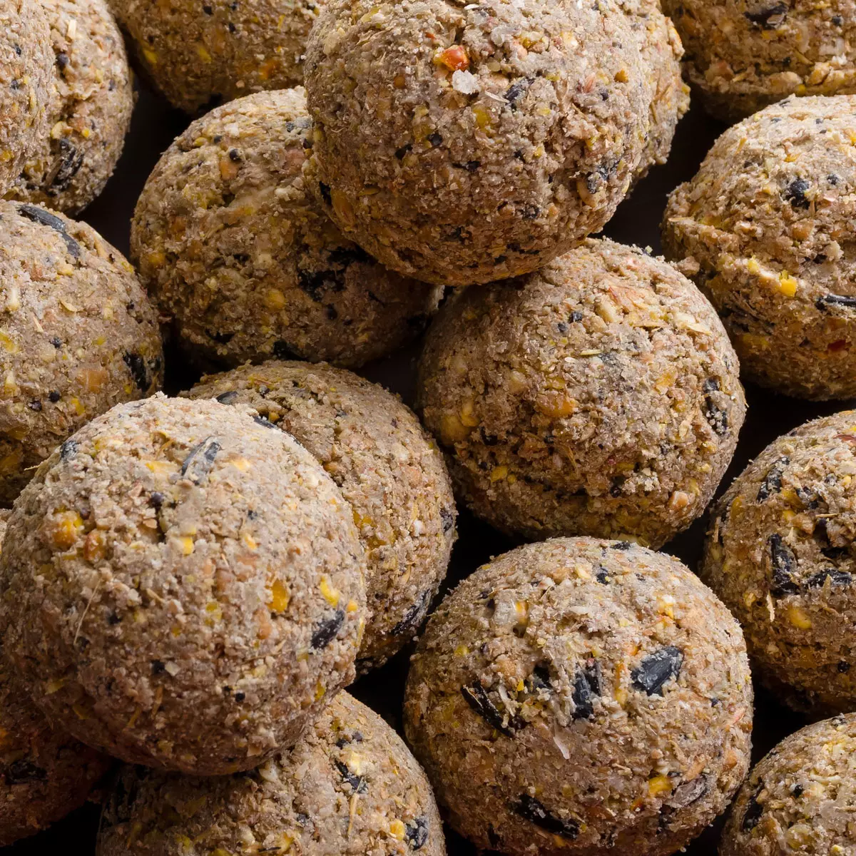 Abgestimmt auf die Ernährungsansprüche von Wildvögeln bieten unsere Meisenknödel eine wertvolle Nahrungsquelle über das ganze Jahr. Durch die vielfältige Zusammensetzung aus hochwertigen Fetten, Getreide und Saaten werden die Vögel mit allen wichtigen Nährstoffen versorgt. Die energiereichen Meisenknödel unterstützen beim Aufbau von Futterreserven und sind für alle Vogelarten geeignet. Neben der schmackhaften Grundsorte sind die Meisenkugeln auch mit Insekten (Protein) und Vollkorn erhältlich.