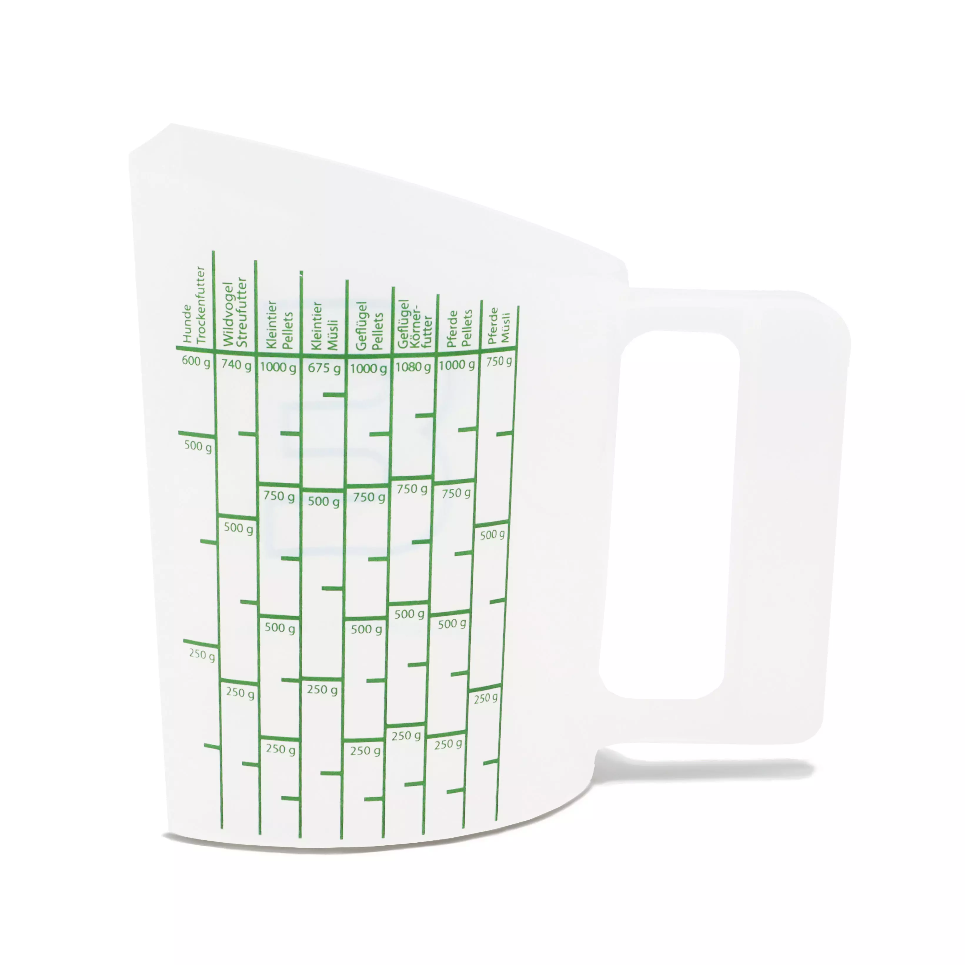 Die Skala auf dem Futtermessbecher misst: